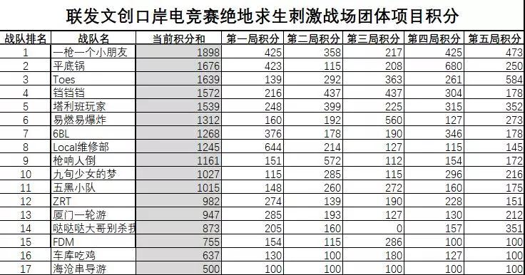 同樣按5場(chǎng)比賽積分求和的方式進(jìn)行排名